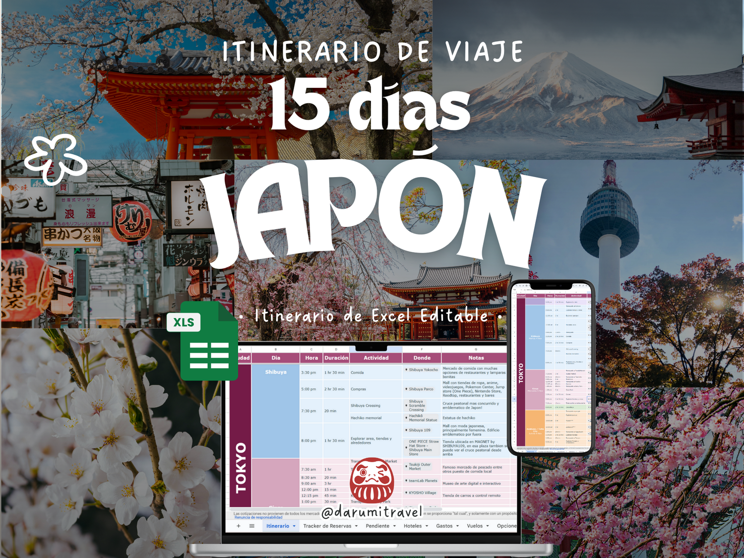 Explora Japón de manera práctica con este itinerario digital de 2 semanas, diseñado para llevar todo lo esencial en tu celular, con hipervínculos y espacio para tus documentos importantes.