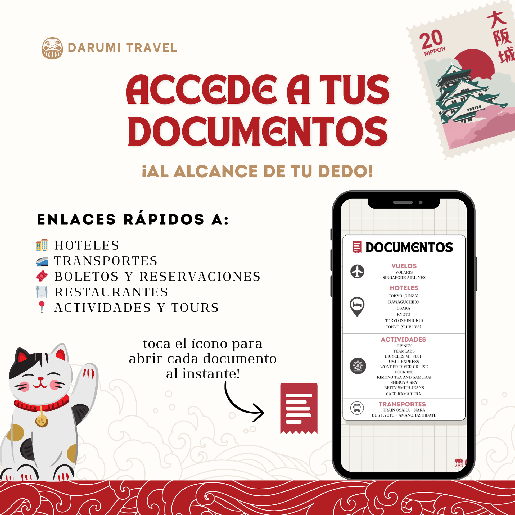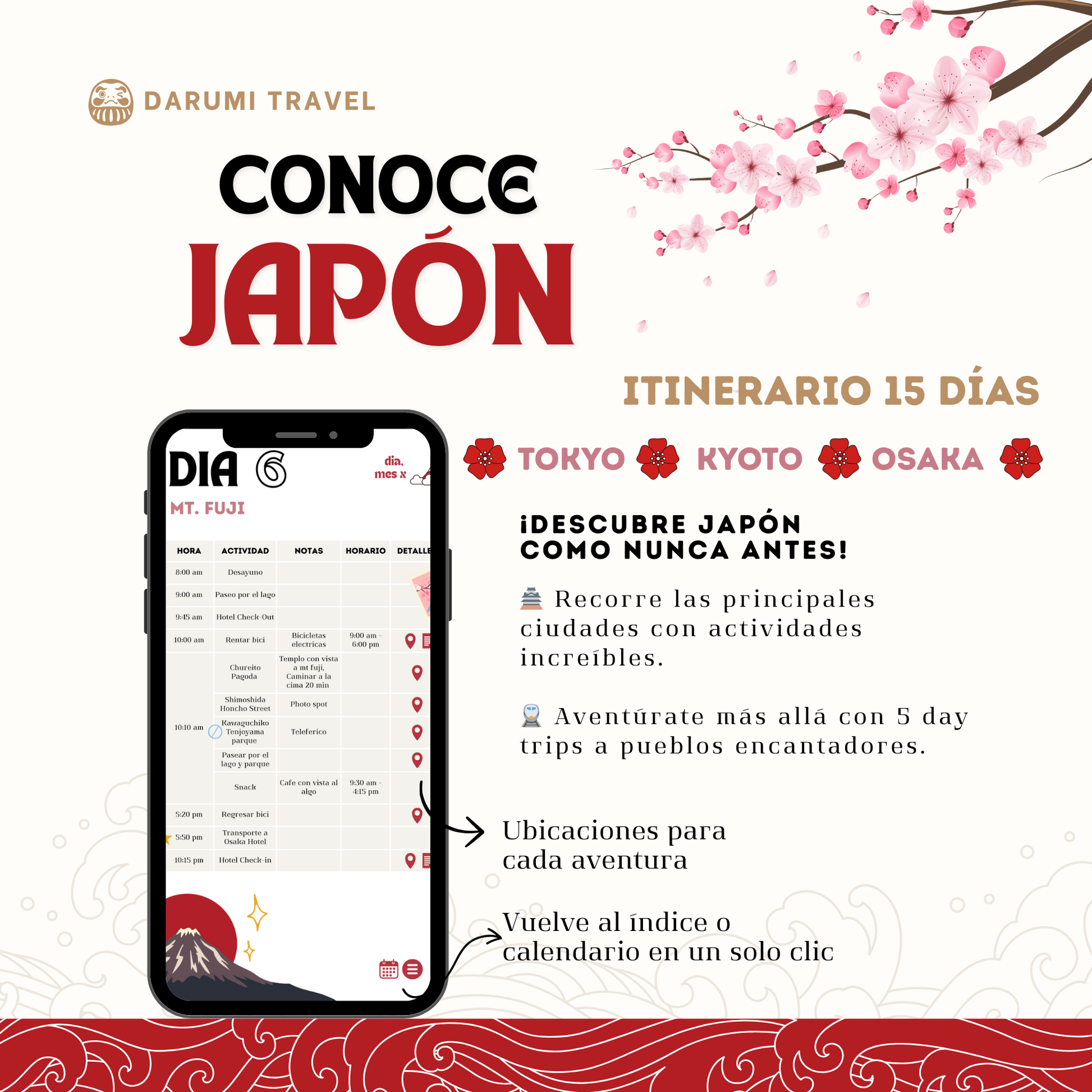 Este itinerario digital es perfecto para quienes buscan un formato más accesible y fácil de llevar, pero sin perder la calidad y la información esencial para un viaje sin estrés. ¡Haz de tu aventura en Japón una experiencia aún más fluida y organizada!